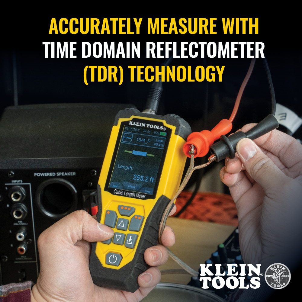 Cable length meter measures length of electrical, data, two-wire and Romex® cables up to 3000 feet (914 m)