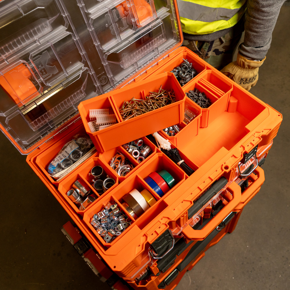 MODbox™ Component boxes have a clear lid to easily view contents for enhanced efficiency and quick assessment of inventory