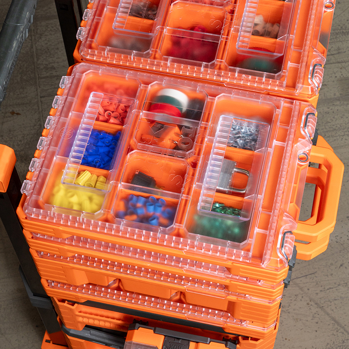 Clear lid to easily view contents for enhanced efficiency and quick assessment of inventory