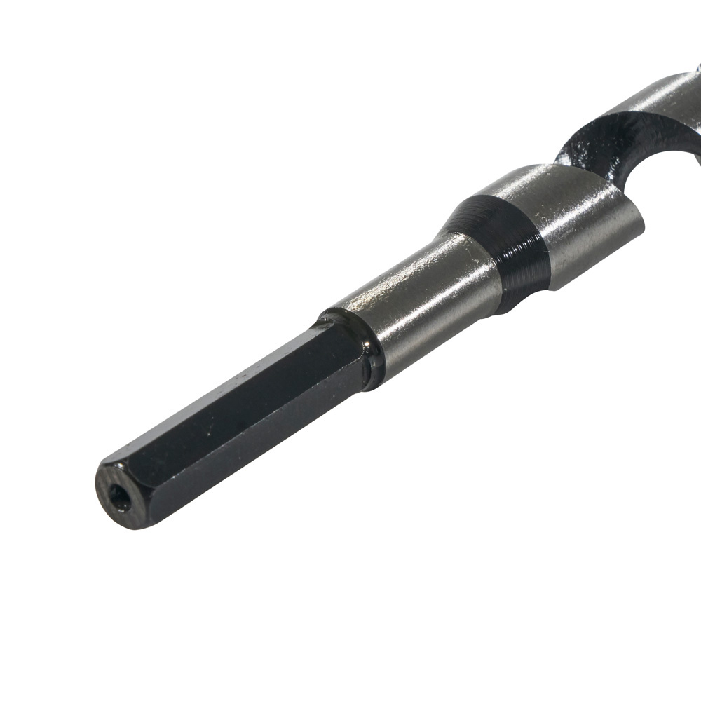 The deep, open-throat design of the Ship Auger bit clears chips for faster, cleaner cuts. The shank is 7/16-Inch hex to fit 1/2-Inch (13 mm) and larger three-jaw chucks. Used for heavy construction and repair work in mines, on docks and bridges as well as electrical work.