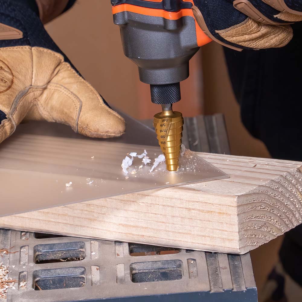 All-Purpose Step Bit Kit with 4 common step bits sizes (1/2, 3/4, 7/8, and 1-3/8-Inch) cuts holes in wide variety of DIY applications and materials (up to 16 gauge steel, plastic, aluminum, wood)