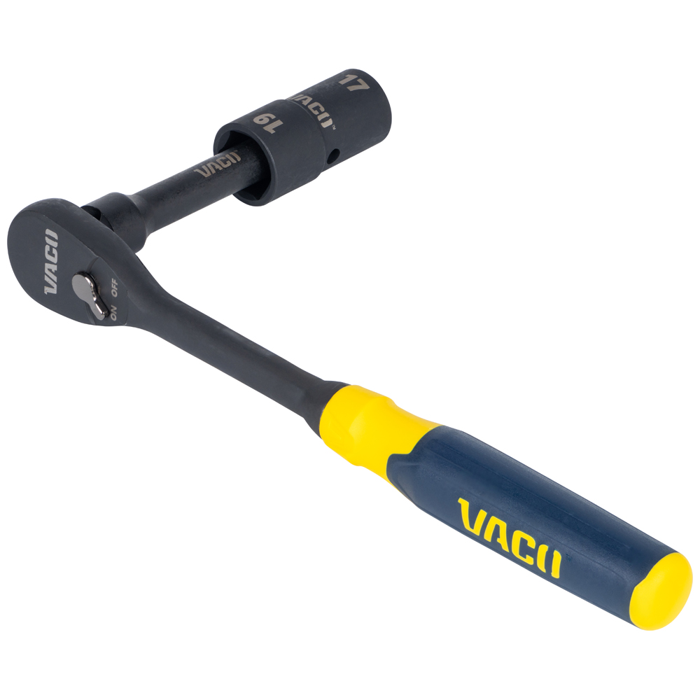 Longer length on the smaller side of the flip socket allows for maximum reach and access to tighter spaces
