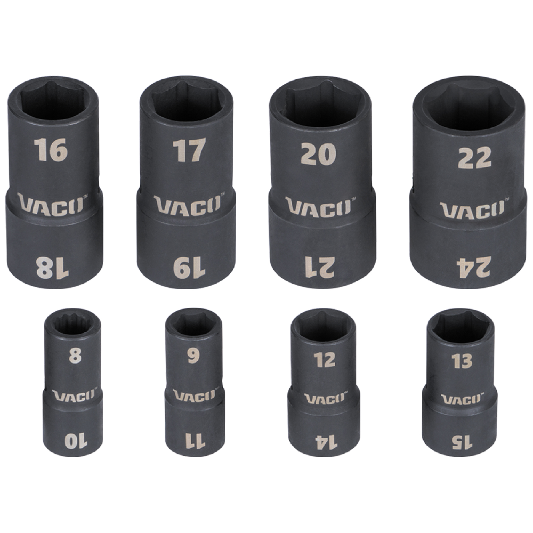 Metric sizes 8 x 10mm, 9 x 11mm, 12 x 14mm, 13 x 15mm, 16 x 18mm, 17 x 19mm, 20 x 21mm, 22 x 24mm