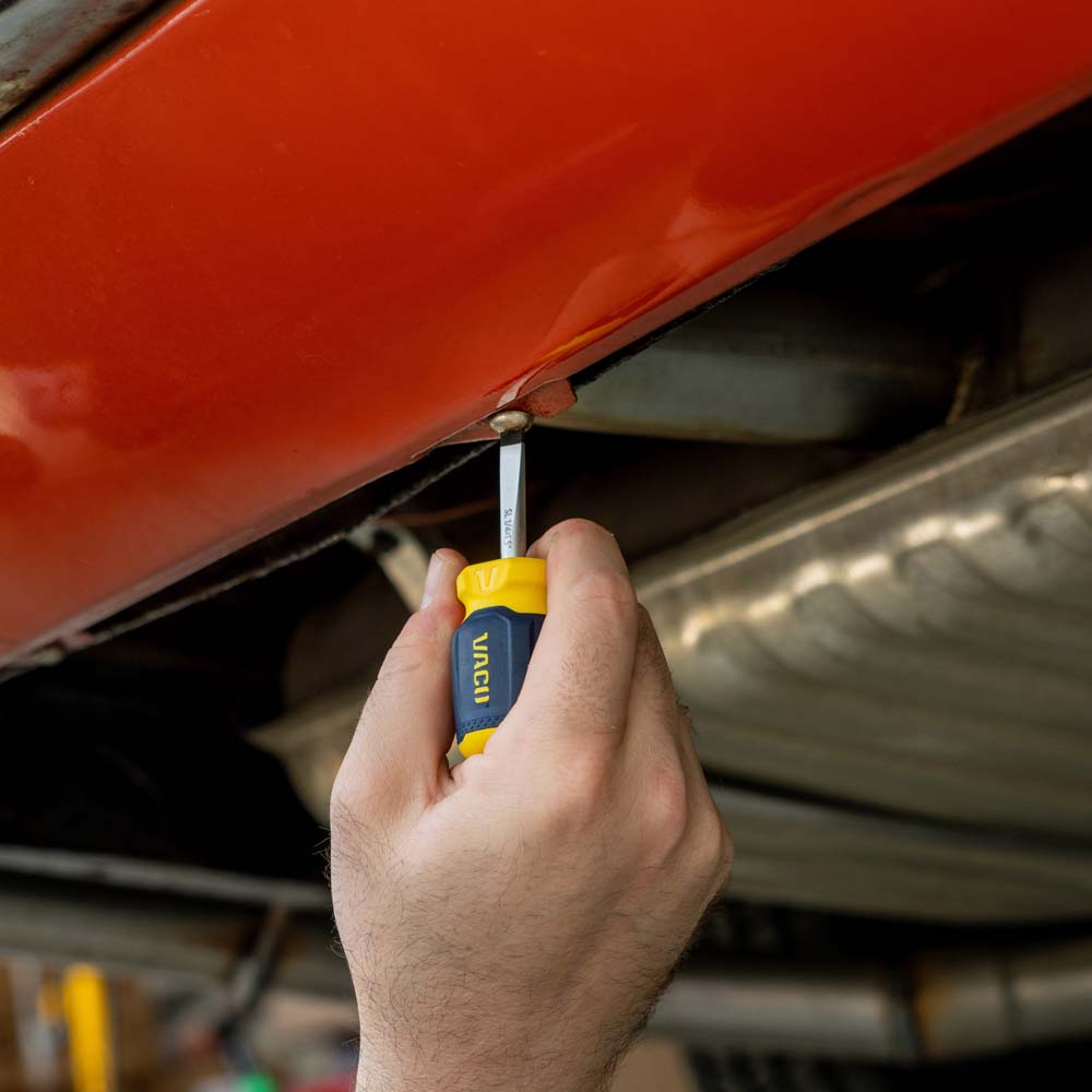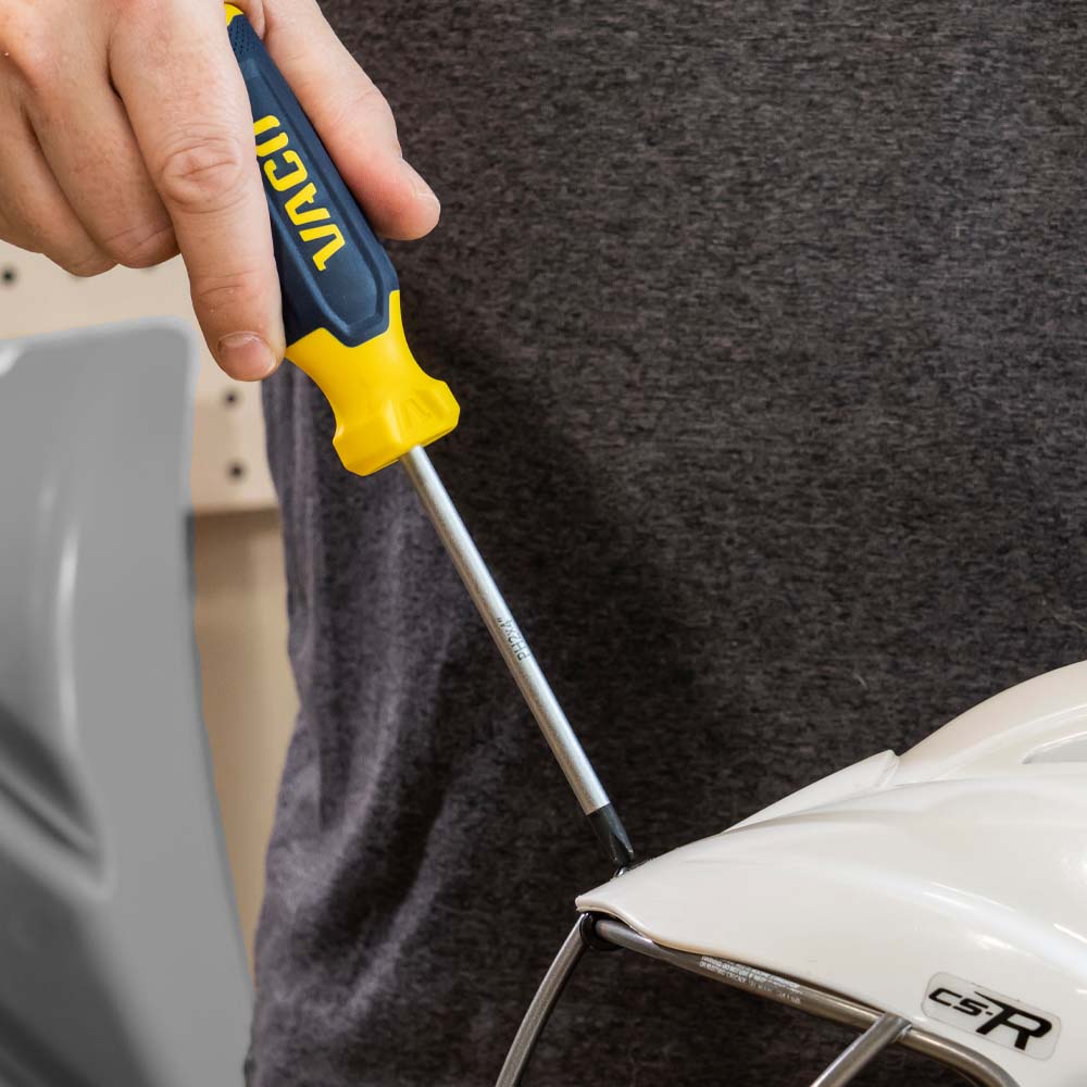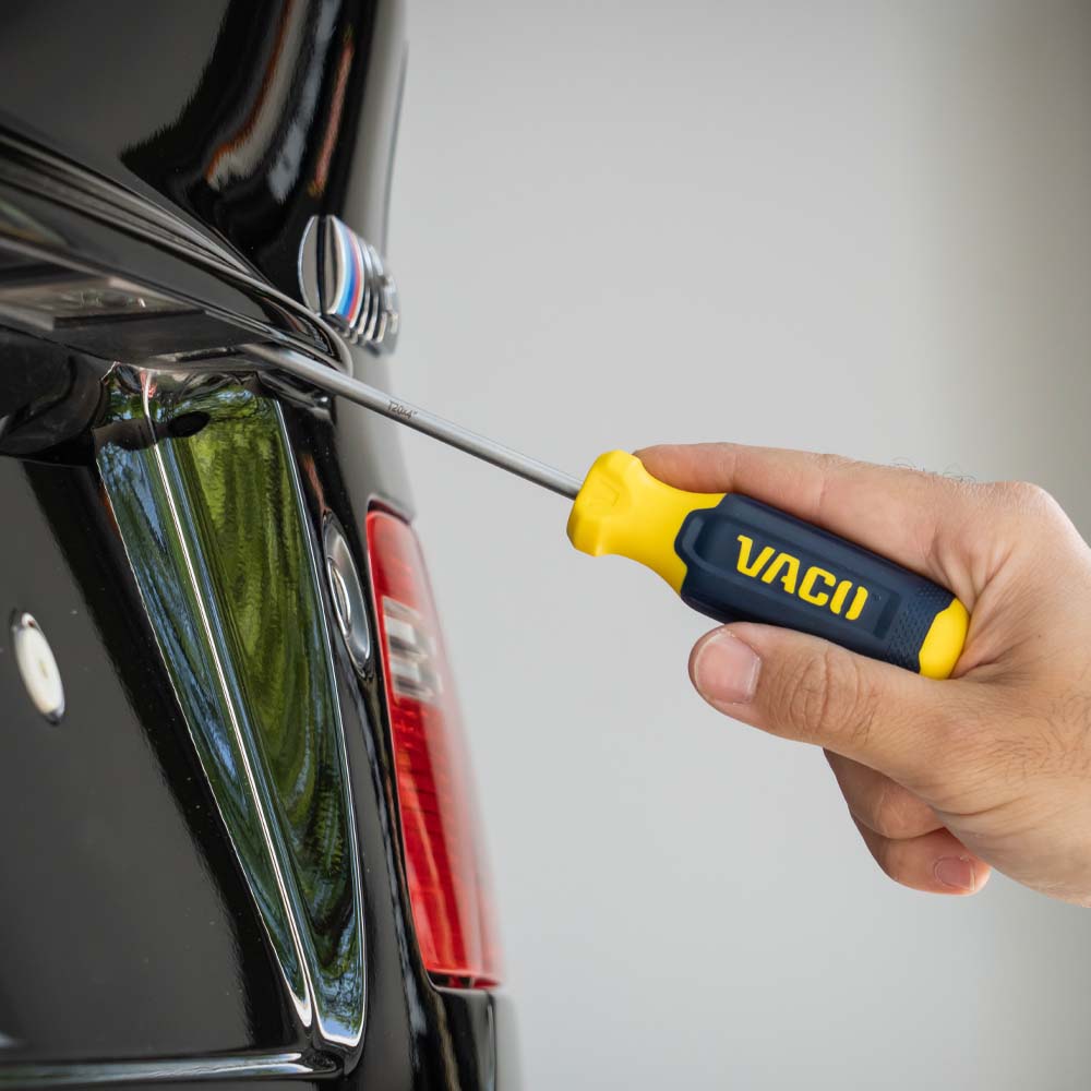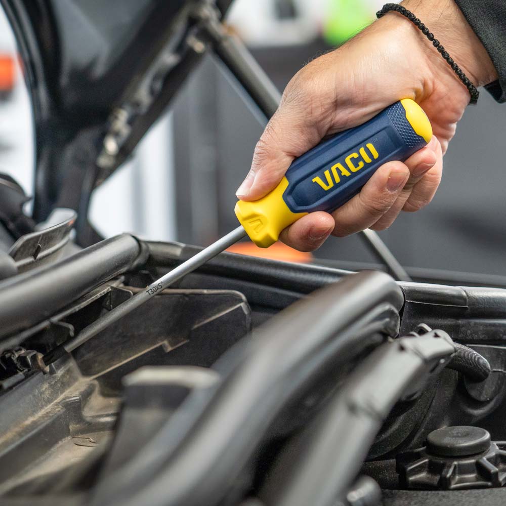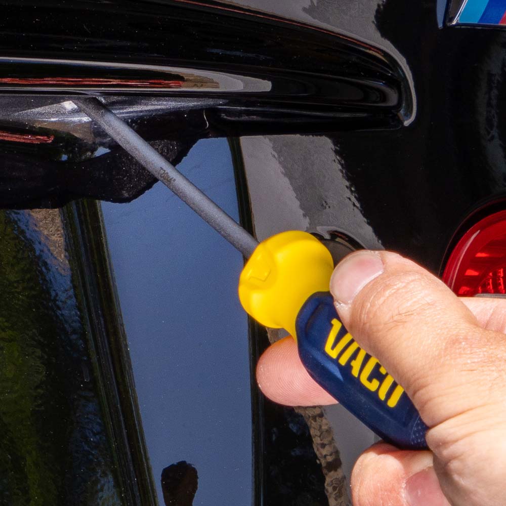 VACO's 20 Piece Screwdriver Set with included magnetizer is perfect for a wide range of tasks with a variety of Phillips, Slotted, and TORX® tip screwdrivers. Make any of the screwdrivers magnetic with the VACO magnetizer. Easily spot the right tip with laser etched blades and marking on the base of the handles. VACO screwdrivers are designed with comfort handles featuring a thumb indentation, ensuring comfortable grip and providing enhanced leverage during use.