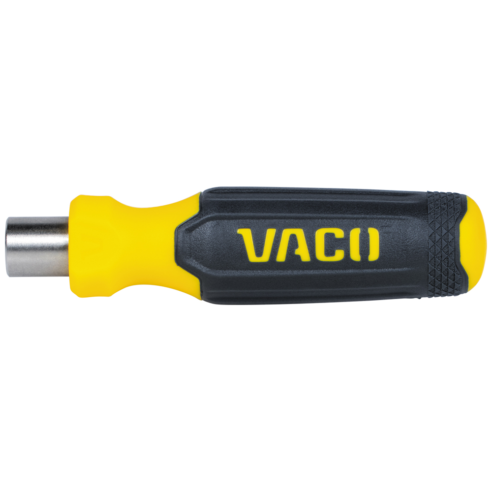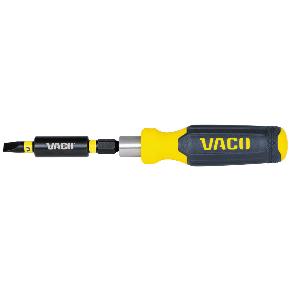 The VACO 32-Piece Metric Compact Set includes a screwdriver handle, 1/4-Inch ratchet, 4-Inch extension, impact adapter, 7 impact-rated sockets, and 20 bits. All items fit neatly in a convenient storage case, perfect for on-the-go tasks. The set also features impact-rated and tamper-resistant TORX® and Hex bits.