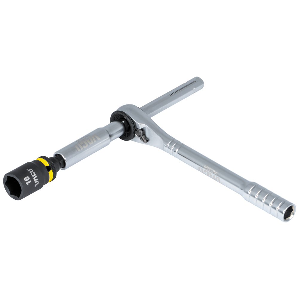 Insert the 4-Inch (10 cm) extension through the ratchet opening for a T-handle driver, resulting in greater leverage in high-torque applications