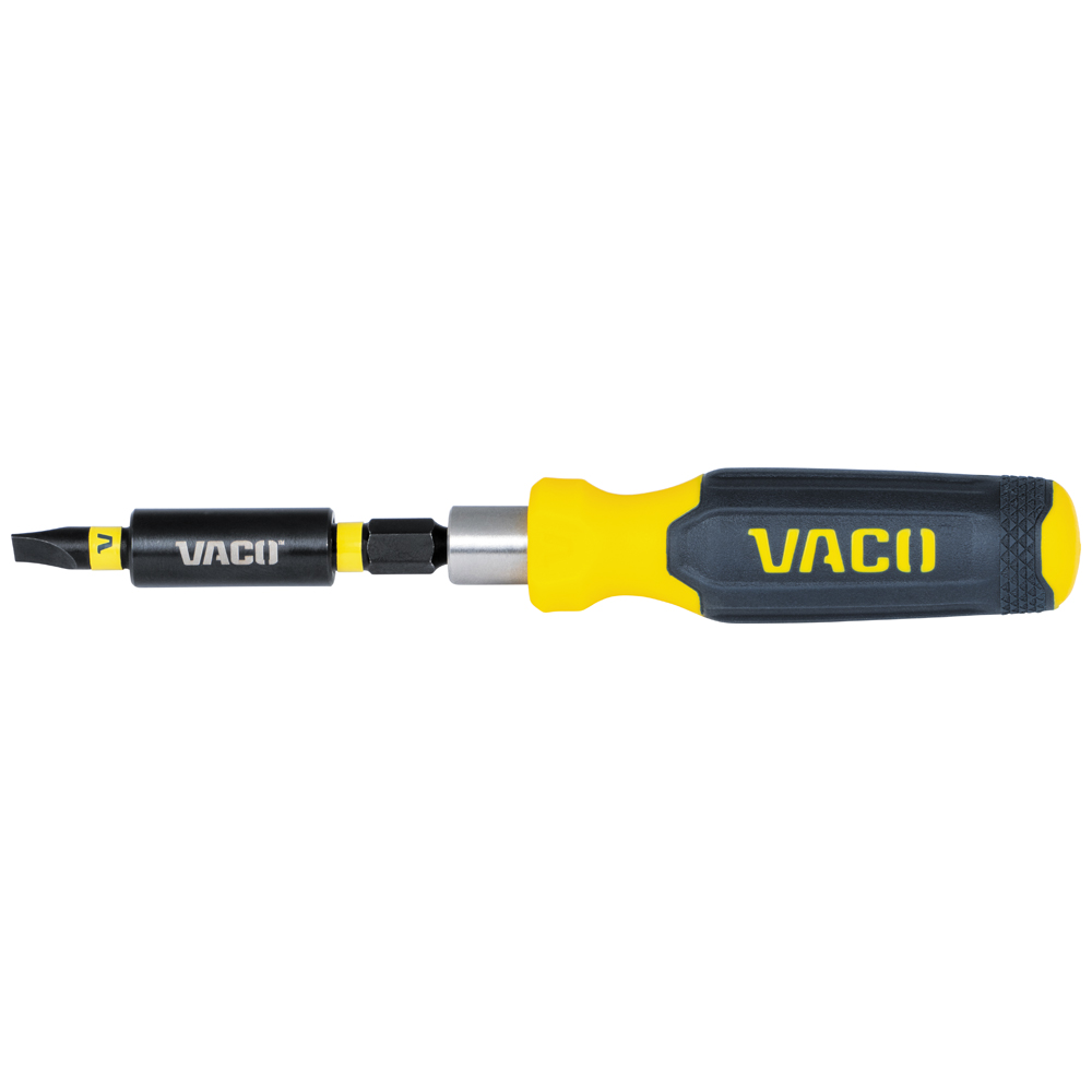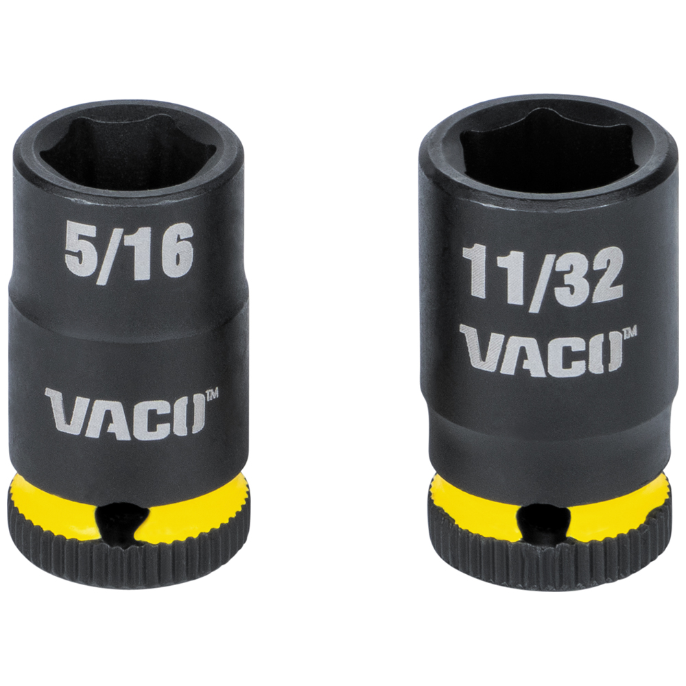 The VACO 32-Piece SAE Compact Set includes a screwdriver handle, 1/4-Inch ratchet, 4-Inch extension, impact adapter, 7 impact-rated sockets, and 20 bits. All items fit neatly in a convenient storage case, perfect for on-the-go tasks. The set also features impact-rated and tamper-resistant TORX® and Hex bits.