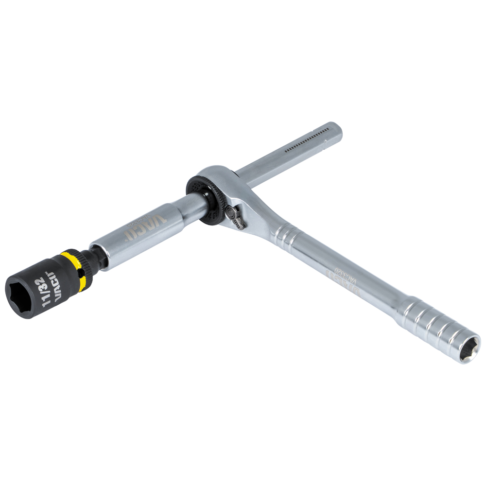 Insert the 4-Inch (10 cm) extension through the ratchet opening for a T-handle driver, resulting in greater leverage in high-torque applications