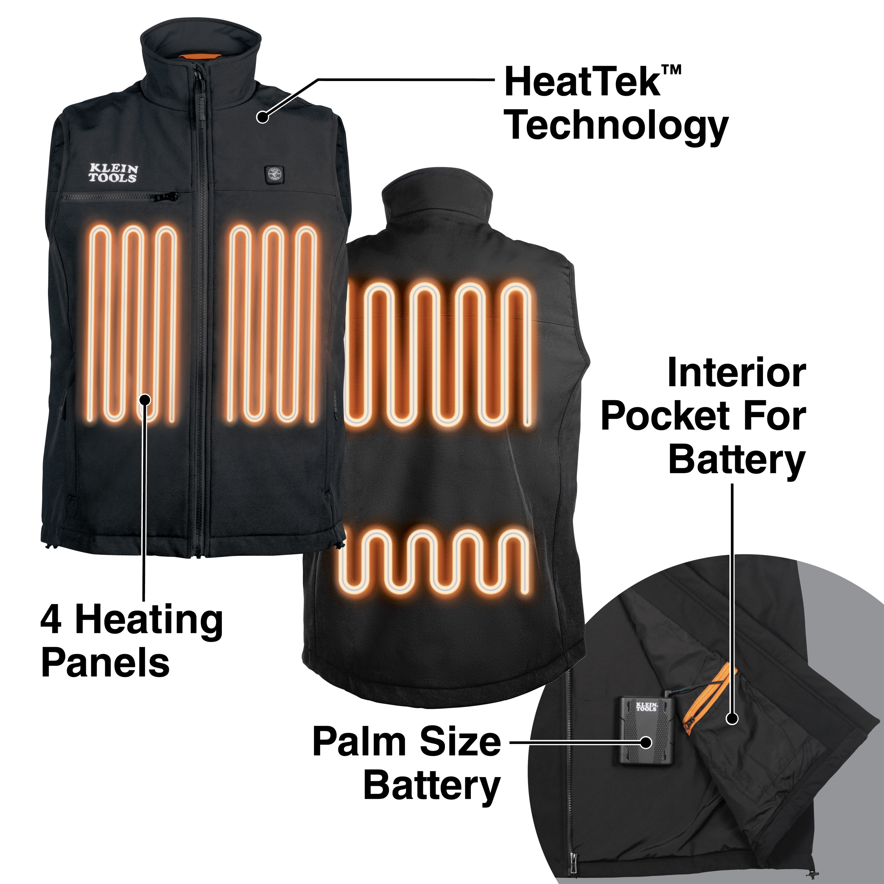 - Risk of fire and electric shock: ONLY use the Heated Base Layer Vests with Klein Tools battery packs, Model # 60957.